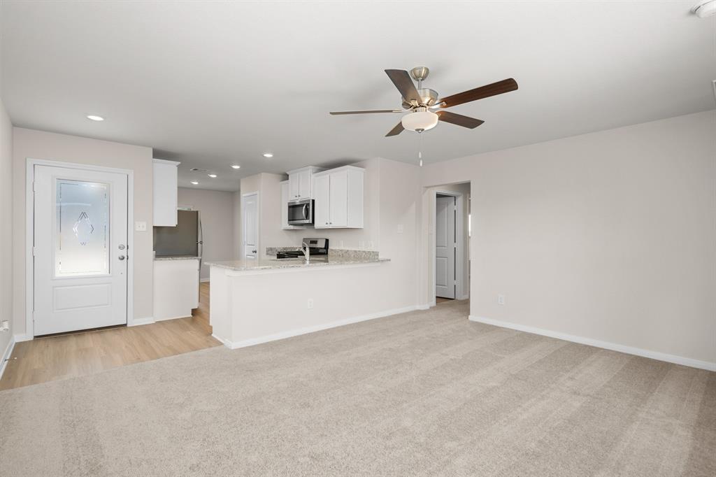 This beautiful single-story home is indeed perfect for growing families and is one of our most popular floor plans. It features 3- bedrooms/2- bathrooms, two-car garage, fenced-in backyard and a covered patio. The modern kitchen is equipped with a bright and spacious breakfast room, white cabinets adorned with brushed nickel knobs, a full suite of whirlpool appliances including a refrigerator and built-in microwave, recess LED lighting and a Wi-Fi equipped programmable garage door opener. The family room is open to the kitchen which makes it easy to entertain in this home. The master suite showcases a tub and shower combo along with a walk-in closet. There are two additional bedrooms that share a tub and shower combo. The amenities in this community are incredible, this includes a zip-line, splash-pad, picnic area, walking/jogging path and various slides. Come visit our Community Today!
