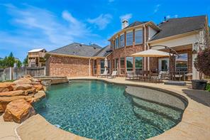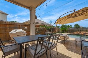 This Perry-built home defies the ordinary with a layout that breathes light and openness into every corner. Just minutes from schools, shopping, and commuter routes, it balances accessibility with a surprising sense of seclusion—thanks to its position backing onto a greenbelt with no rear neighbors. Inside, the living spaces stretch upward, two stories high, while hardwood flooring adds warmth and texture across the living, dining, and study. A wall of windows draws your eye to the backyard, where a pool, spa, and cascading rock waterfall invite you to pause. The kitchen, smartly designed with a central island and discreet downdraft venting, flows seamlessly into the heart of the home—perfect for those who move between cooking and conversation. Upstairs, three bedrooms and two full baths provide room to stretch out, and a bonus space offers endless potential: media lounge, guest suite, creative studio, you decide. A home that makes space not just to live, but to imagine.
