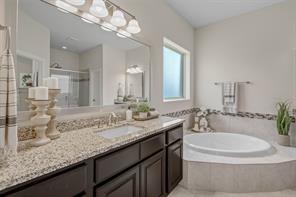 Step inside the grand entry of this stunning David Weekley home in Castlegate II & experience space, elegance, & comfort. Soaring ceilings & large windows fill the open-concept living area with natural light, while a secluded office & formal dining room offer flexibility & style. The gourmet kitchen shines with an oversized island, rich cabinetry, & a sunlit breakfast nook. The primary suite is a tranquil retreat with a bay window & spa-like bath featuring a soaking tub, dual vanities, & glass shower. The main floor also includes a private guest bedroom with en-suite bath, half bath, & laundry room. Upstairs, find three spacious bedrooms-one with a private bath & two with a Jack-&-Jill—plus a generous flex space. Outside, a covered patio & outdoor kitchen create an entertainer’s dream on a 0.23-acre lot. Enjoy access to Castlegate II’s resort-style amenities, including a community pool, event center, & scenic trails. Meticulously maintained & thoughtfully upgraded—this home has it all.