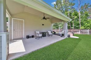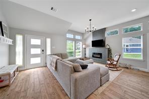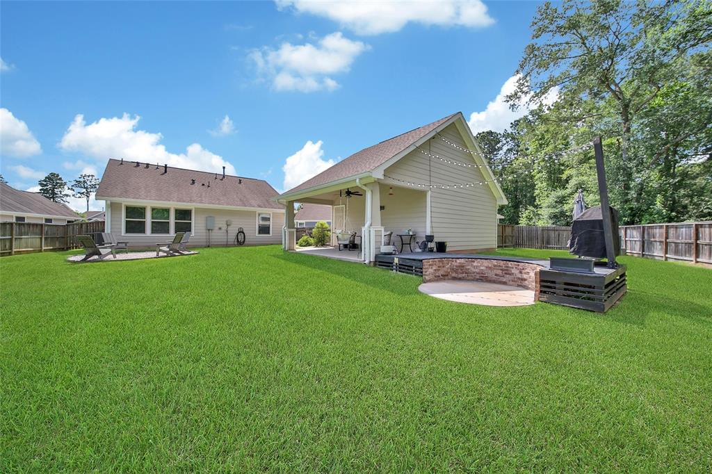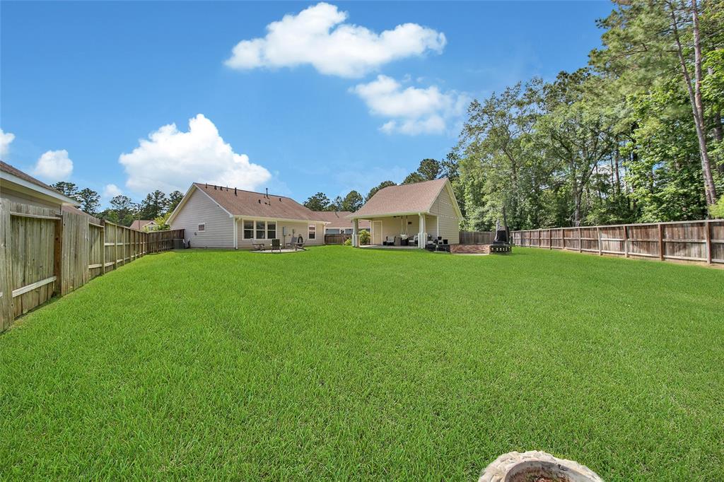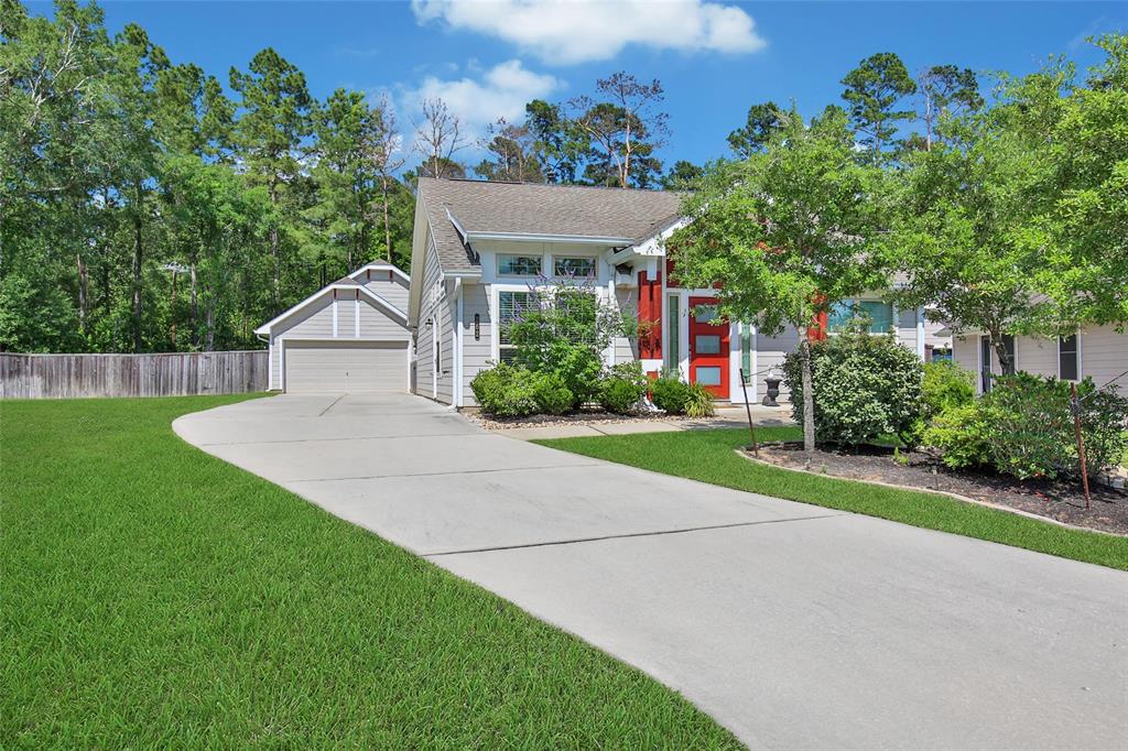 Nestled in the desirable Woodforest Master Planned Community, this charming bungalow offers the perfect blend of comfort, style, and space. Set on an oversized lot, this 3 bed, 2 bath home features an open-concept floorplan filled with exceptional natural light and wood-like tile flooring throughout the main living areas. The cozy electric fireplace adds warmth and charm to the living space. The kitchen is a chef’s dream with granite countertops, stainless steel appliances, and a large island perfect for entertaining. The private primary suite is tucked away at the rear of the home, offering peaceful views of green space filled with majestic pines, and includes a luxurious en-suite bath with an expansive shower. Step outside to a massive backyard and enjoy the covered patio—ideal for relaxing with a book or hosting gatherings. There's plenty of room for a future pool or garden. Don’t miss your chance to own this inviting home in a vibrant, amenity-rich community!