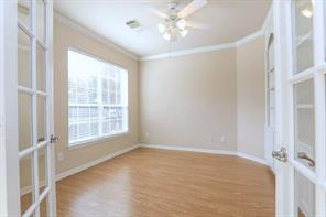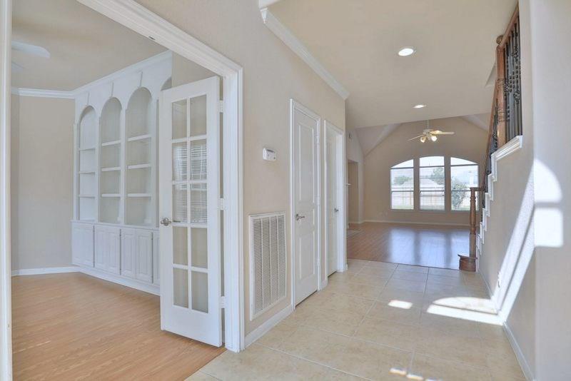 Gorgeous, Immaculate move-in condition 5 bdrm, 3.5 bath, 2 detached garage home is located in the most desirable subdivision Cinco Ranch West, Zoned to Tompkins High. Front entry W/Tile floor and high ceiling. Study/home office is off the entry W/Built-in book-shelves, French door, wood floor. Crown Molding thr-out first floor. Spacious formal living W/Soaring ceiling, wood floor. Upgraded kitchen opens to living W/built-in GE appliances, granite counter-tops tile floor. Over-sized Primary suite on the 1st floor W/his and her walk-in closets. Primary bath features double sinks, tile floor, Jacuzzi tub and separate shower. Game-room up with 4 bdrm, 2 full bath and walk-in closets. Ceiling fans are in all bdrm. NO Back neighbors. Lush big backyard for your relaxation. Call now for a house tour.