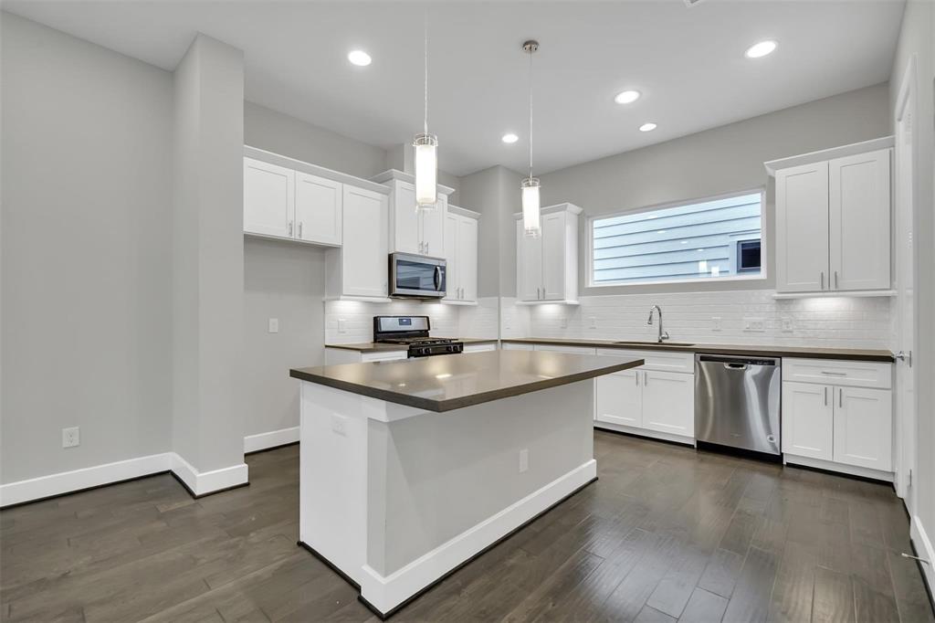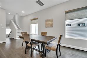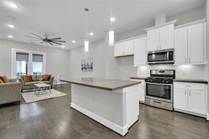Welcome to this beautifully maintained home in Houston’s sought-after East Downtown neighborhood—just minutes from UH, Med Center, and downtown. Tucked inside a secure gated community, this home stands out with its rare fenced yard, covered patio perfect for grilling, and oversized balcony for relaxing or entertaining. Step inside to find soaring ceilings and abundant natural light. Modern finishes throughout: engineered wood flooring, plush carpeting, and elegant tile and a spacious, open-concept living/dining area with a convenient powder bath on the main floor. The kitchen is a chefs dream with shaker-style cabinets, stainless steel appliances, gas range, large island, and upgraded window coverings. Generously sized closets and a luxurious primary suite featuring a spa-like bath with soaking tub! This home blends city convenience with modern comfort—and it’s ready for you to move in and love every inch of it!