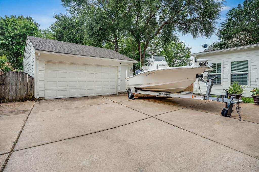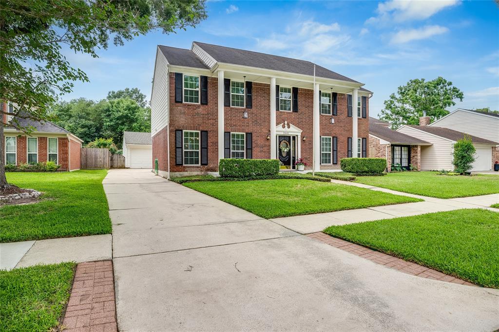 Stately colonial home situated on a tree lined cul de sac with private neighborhood boat ramp access this charming home has NEVER flooded (per seller). Leaded glass front door with a spacious and flexible downstairs floorplan featuring 2 seperate living areas, home office with French doors and 2 dining areas - breakfast room overlooking completely updated kitchen with bay windows covered with plantation shutters and a formal dining area. Half bathroom downstairs and walk in laundry room. Upstairs features primary bedroom with en suite bathroom and 4 additional secondary bedrooms and full bathroom. Extra long driveway easily accommodates 4+ vehicles as well as room for boat parking. Park like backyard features huge shade trees, large wood deck, storage shed and additional covered storage area, no back neighbors only wooded trees. All windows replaced, new paint, faucets, fixtures and hardware throughout. Great CCISD schools & Move in ready!