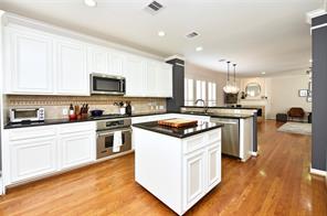 This stunning 3-story townhome in the heart of Midtown is conveniently located within walking distance to restaurants, pubs, coffee shops, grocery stores and more. Easy access to 3 major freeways. The first floor includes an attached 2-car garage, storage hallway, and a versatile flex space ideal for a guest suite, home gym, or office, complete with an en-suite bathroom and walk-in closet. The second floor offers an open-concept living area with high ceilings, plantation shutters throughout the chef’s island kitchen, dining room, and a spacious family room. The third floor features a large primary bedroom with sitting area, updated en-suite bath, and walk-in closet, along with a secondary bedroom, en-suite bath, and laundry room. A fully fenced private patio completes this home which offers an elevated lifestyle in one of Midtown’s most desirable neighborhoods.