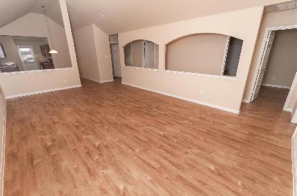 The Gilmore is a comfortable two-story home with 3 bedrooms and 2.5 bathrooms. This home has a very open and spacious living room area tucked in the back of the home and a great u-shaped kitchen that is tucked away in another corner. There is a powder room downstairs, convenient for guests. All bedrooms are upstairs. The master bedroom is one of our largest and has a great walk-in closet attached. The utility room is also upstairs for added convenience. Features wood-grain vinyl plank flooring, a two-car garage, a fenced backyard, and a sprinkler system. All homes are SimplyMaintained for a $100 monthly fee that includes front and back yard lawn care and exterior pest control.
