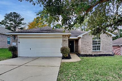 Welcome to 279 Adobe Terrace, a freshly updated one-story home tucked away on a quiet cul-de-sac in Tejascreek and zoned to Conroe ISD. Recent updates include new flooring, fresh interior paint, and updated countertops, giving the home a clean, revived feel. The spacious family room features a gas fireplace and flows easily into the breakfast area and kitchen, making everyday living comfortable and functional. The primary bedroom offers a generous layout with a walk-in closet, while the en-suite bath includes double vanities, a soaking tub, and a separate shower. Enjoy time outdoors on the extended, screened-in patio overlooking the backyard—perfect for relaxing or entertaining. Conveniently located near shopping with quick access to Lake Conroe, this home offers easy living in a desirable setting.