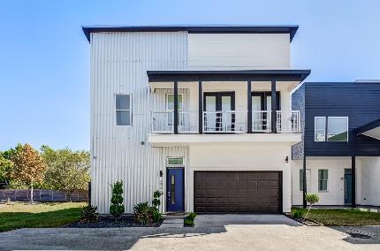 Stunning FOUR BEDROOM Modern Contemporary Home w/ FIRST FLOOR LIVING and FIRST FLOOR BEDROOM/OFFICE - LOTS of Yard Space!! 4 bedroom/4 bathroom with spacious, private 5100 square foot lot & huge Primary Balcony with unobstructed views. Second Floor Primary bedroom and spa like primary bathroom invites an abundance of natural light, upgraded freestanding tub, & sitdown vanity. First floor living area boasts soaring 12-ft ceilings, wide plank wood floors, & a beautiful 12 foot X 10 foot Andersen stacked door that opens from your living room to a spacious covered patio. House is flooded w/ natural light. Stunning kitchen features SS Fisher Paykel appliances, prep-island, custom furniture grade soft close pull-out cabinets/drawers and luxe imperial white marble backsplash/quartz countertops.