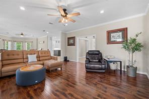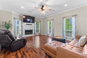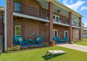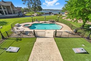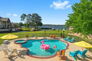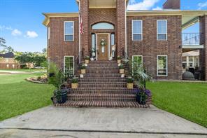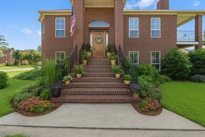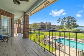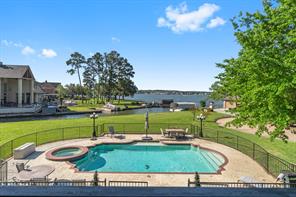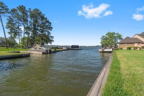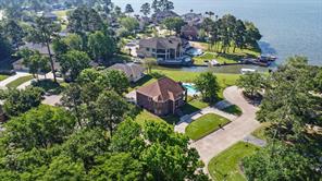 Welcome to this beautiful 3 bed, 2 bath, 2-car garage home in sought-after Walden on Lake Conroe! Nestled in a peaceful, wooded neighborhood, this stately two-story brick home offers the perfect mix of comfort, style, and lakefront charm. Inside, you'll find elegant crown molding, a formal entry/foyer, rich wood floors, and a gorgeous stairway. The upside-down, split-level layout adds character, while granite countertops, tile in wet areas, and custom window coverings add a touch of luxury. Step outside to your own private paradise-this spacious canal-front lot features a lush lawn, circular driveway, and a private dock. The highlight is the sparkling, fenced-in pool and spa, perfect for relaxing or hosting guests. Enjoy outdoor living year-round with a covered patio and upstairs balcony overlooking the water. Surrounded by other beautifully maintained homes and just minutes from open water, this gem offers the ultimate Lake Conroe lifestyle. Come fall in love!