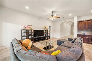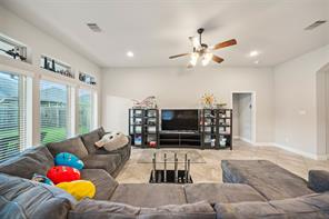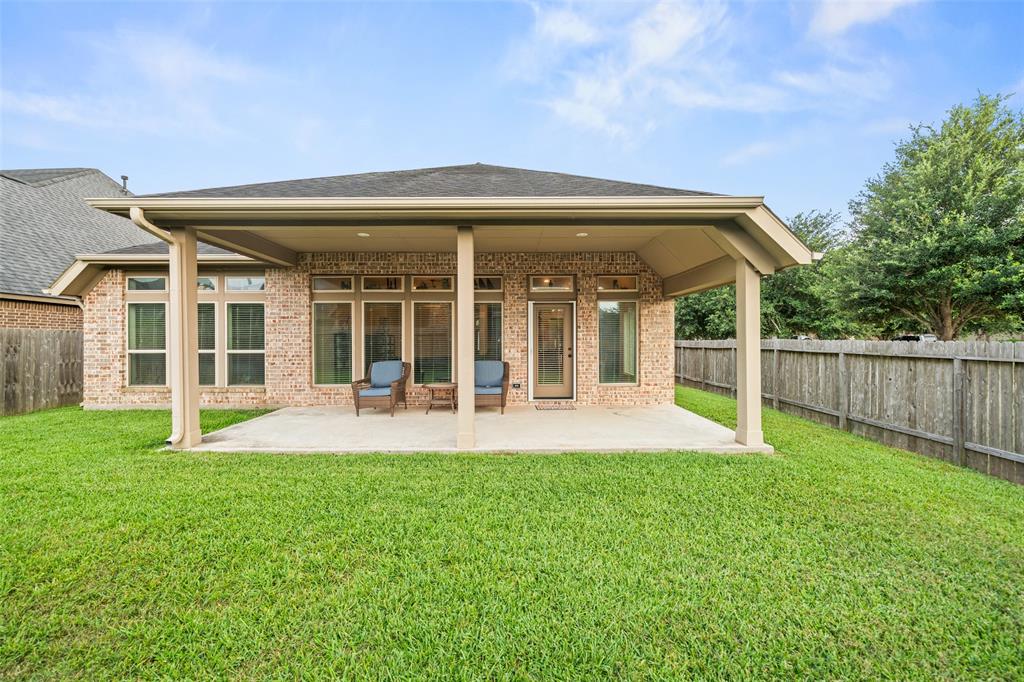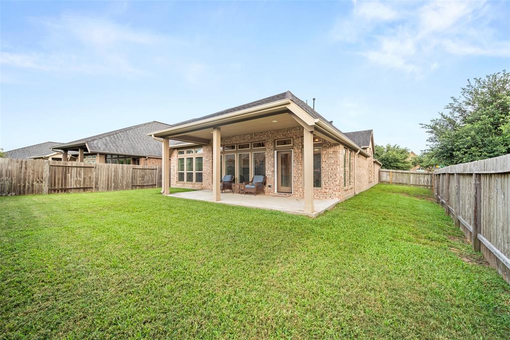 Welcome to this beautiful 4 bed/3 bath Perry home in Rivers Edge, situated on a spacious 8276 sqft corner lot. This meticulous cared for property features an extended tile entry, formal dining room, 12' ceilings, & study w/double doors for privacy. The family room offers a picturesque view of the backyard through a wall of windows. Chef inspired kitchen showcases granite countertops, dark wood cabinets, & eat-in island that opens to family room. Step outside to enjoy the huge covered patio & fenced backyard w/room for a pool. Primary bedroom has spa like feel w/en-suite bath, dual sinks, garden tub, glass-enclosed shower, & large walk-in closet. 1st. secondary bdrm w/en-suite bath useful as guest suite. Energy-efficient features w/low-e windows, attic insulation, & programmable thermostat = low energy bills. Community amenities are clubhouse, pool, playground, & walking paths. Conveniently located to Hwy 90 & 99 Grand Parkway, Brazos Town Center & dining. Never Flooded per seller