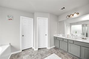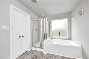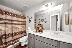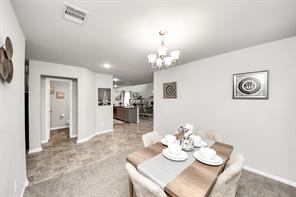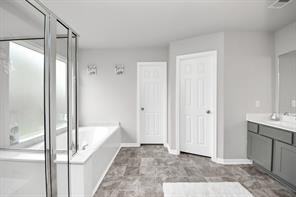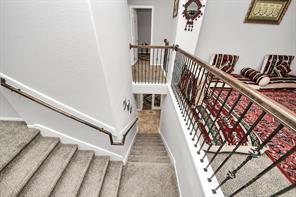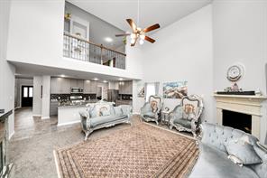 This stunning property features upgrades throughout, including a wood leaded glass front door, 42" kitchen cabinets with tile backsplash, granite countertops, and stainless steel appliances. The master bath boasts separate shower, recessed lights, and extra vanity sink. Enjoy the warmth of a 36" direct vent fireplace with cast stone surround. Additional features include metal balusters, French doors at the study, full gutters, covered patio, and a 2-car garage. With 4 bedrooms, 2.5 bathrooms, and 2,788 sqft of living space on a 6,765 sqft lot in Rosenberg, TX, this home is a must-see.