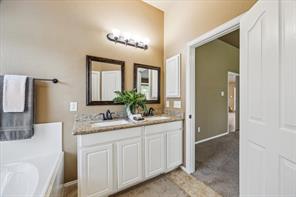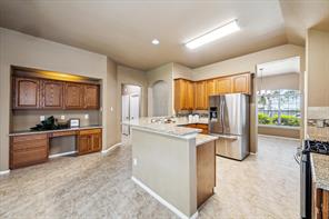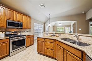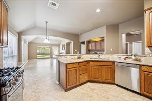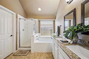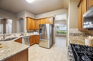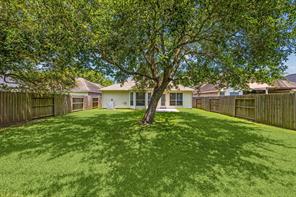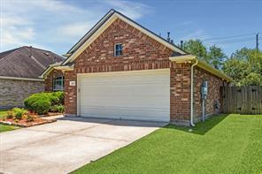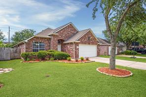 Fall in love with this impeccably maintained 3-bed, 2-bath, 2-car-garage gem boasting a brand-new architectural roof (April 2025) and fresh, show-stopping landscaping. Inside, sun-lit tile floors flow from an elegant formal dining room into a spacious living area anchored by a gas fireplace and a convenient office nook. The open kitchen—kept extra cool with its own A/C—features granite counters, designer backsplash, and abundant cabinetry and prep space. Tucked away for privacy, the primary suite offers a charming bay window plus a spa-style bath with dual vanities, garden tub, and separate walk-in shower. Secondary bedrooms are plush with carpet and ceiling-fan comfort. Step outside to an expansive, fully fenced backyard ready for entertaining or play. Never flooded (per seller) and truly move-in ready, this home delivers peace of mind and everyday elegance—schedule your showing today!