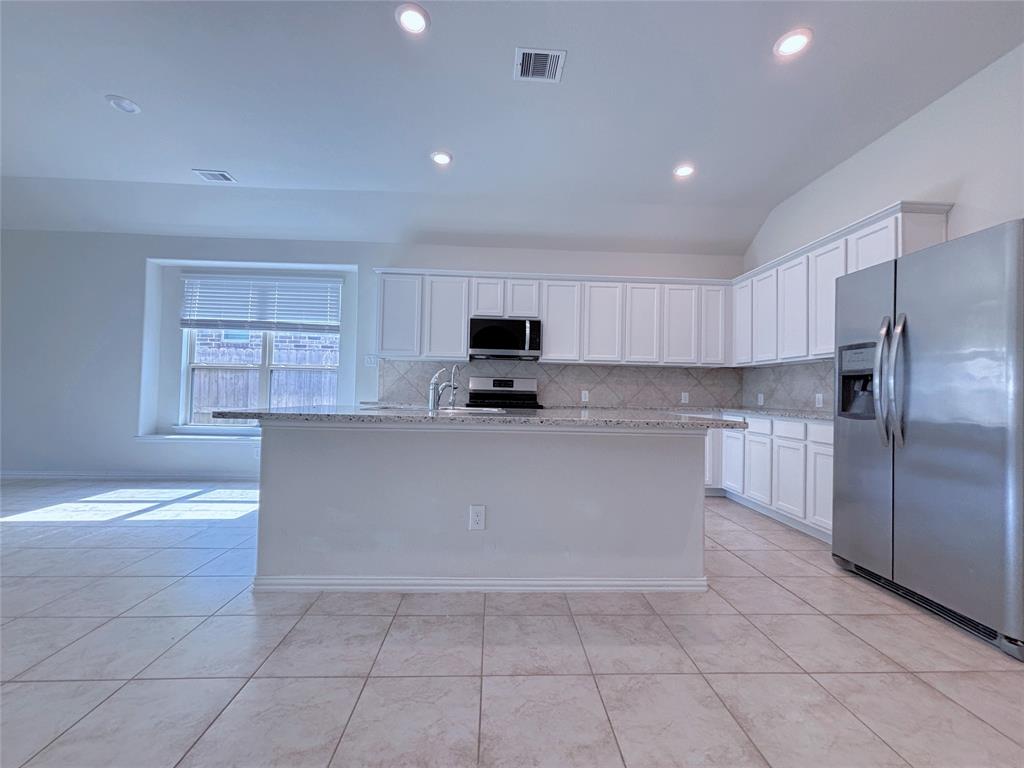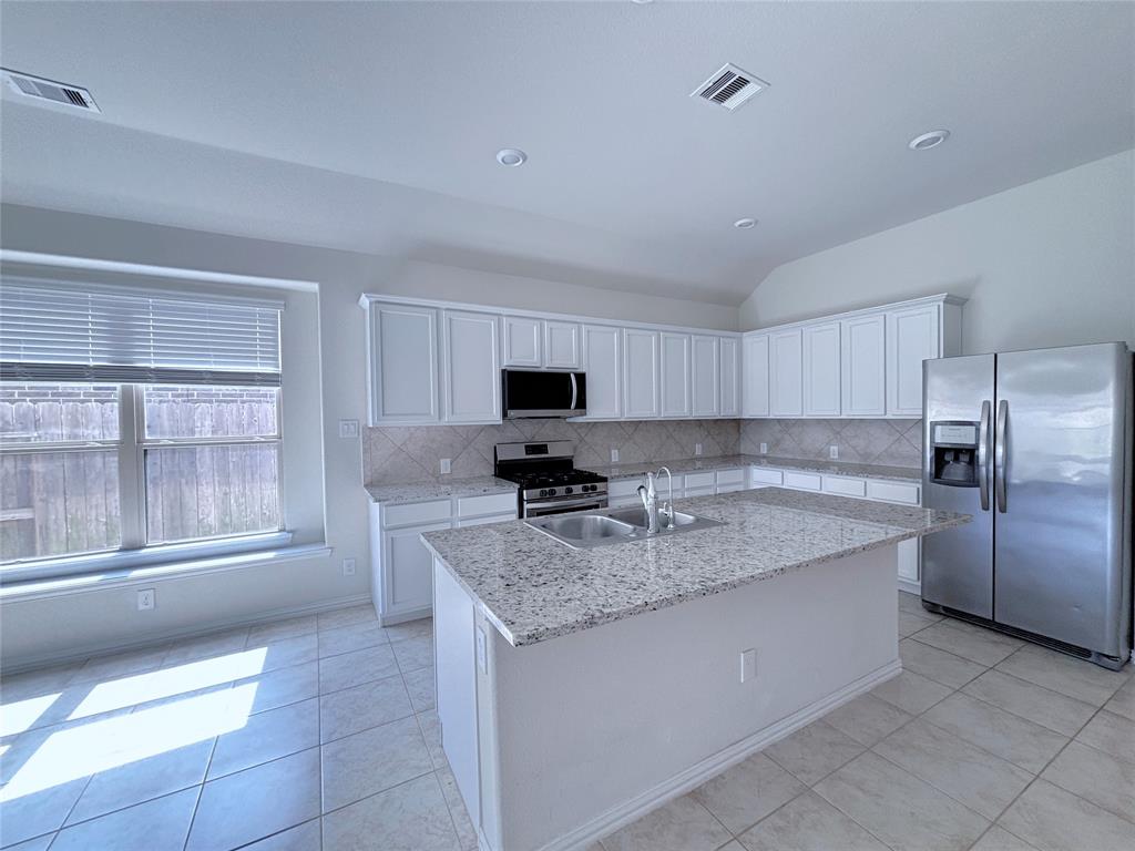 Welcome to this warm and inviting one-story home featuring 3 comfortable bedrooms, 2 full bathrooms, and a bright open layout designed for everyday living. The cozy kitchen includes granite countertops, stainless steel appliances, and a large island that flows into the dining and living areas—perfect for family time or casual gatherings. The primary bedroom offers a walk-in closet and a private bathroom with double sinks. Enjoy peaceful moments on the covered patio overlooking a fully fenced backyard. Located in the friendly Jordan Ranch community with great amenities. Washer, dryer, and refrigerator are included.