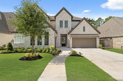 FIVE BEDROOM HOME ON A CORNER.Fabulous 2-story plan by Newmark, the San Germain, featuring 3800 sq ft. including 5 bedrooms and 5.5 baths. Beautiful 20 ft ceilings in the family room area add to the attractive and beautiful windows along the rear of the home. Stacked cabinets in the kitchen showcase lots of storage, also has large cove molding, hidden trash receptacle, porcelain counters top it off. 8 ft door as you enter the home and 8 ft doors throughout the plan offer great appeal not to mention the hardwood floors in the common areas and wood staircase as you enter. Main suite features a 6 ft free standing tub, double vanities and a separate shower with upgraded tile in all areas. Huge covered patio included as well as sprinklers front and back. Split 3 car garage a plus and modern features throughout this home will attract many buyers curiosity.