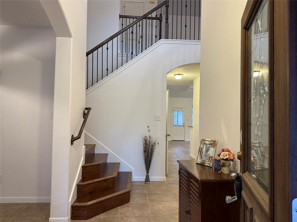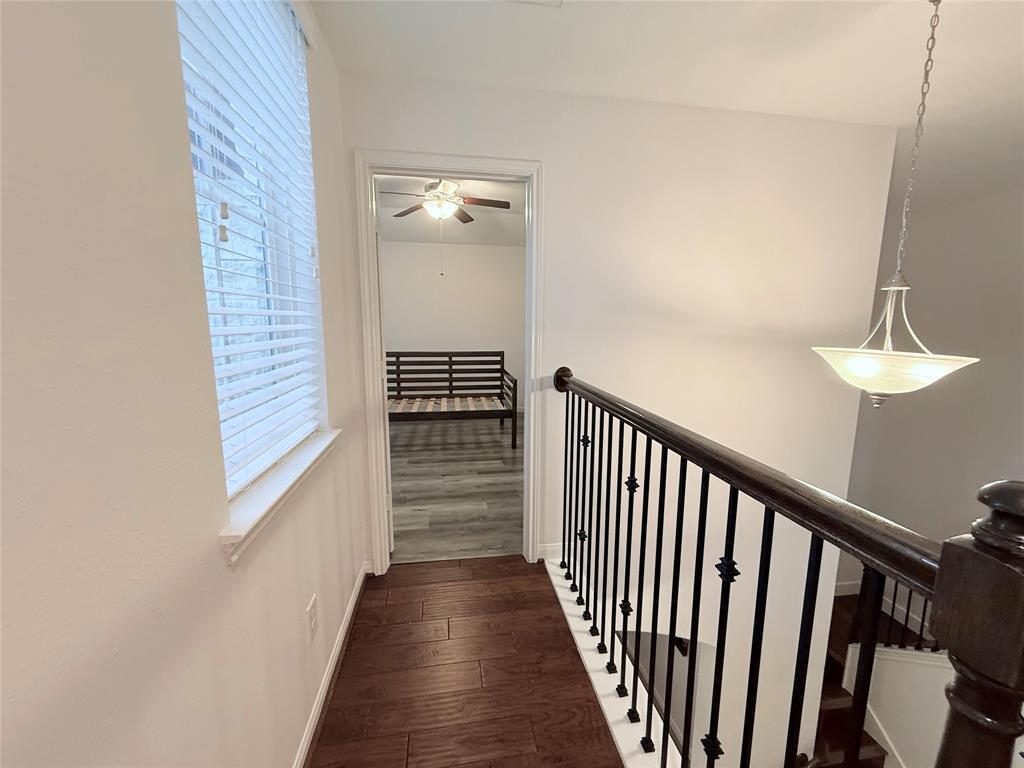 This beautiful home is located on a quiet cul-de-sac and features a bright, open floor plan. It boasts wood flooring throughout, with tile in all wet areas. The interior has been freshly painted, and the elegant wrought iron staircase adds a touch of charm. The spacious primary bedroom is located on the main floor and includes a cozy sitting area. The primary bathroom offers double sinks, a separate shower, and a soaking tub for relaxation. The formal dining room can easily be converted into a home office. The family room features soaring ceilings, creating an airy and inviting atmosphere. Upstairs, you'll find an oversized game room along with three additional bedrooms. A convenient Hollywood bathroom and an in-suite bathroom complete the upper level. Whole house water softener. No additional cost for the existing furniture. Free 300m internet included. This house is zone to excellent Conroe ISD.