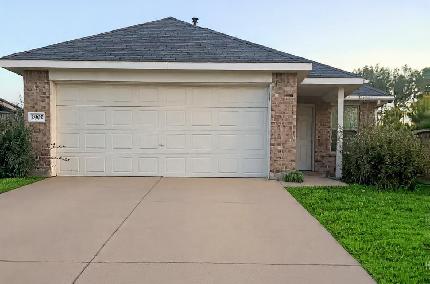 Newer construction home built in 2023 for rent in Ladera Creek! This single-story home enjoys an open-concept layout that is ideal for modern family living. Warm vinyl wood-look plank flooring throughout main traffic areas. Large family room, formal dining area, and a spacious kitchen all in an open floorplan. Attached covered porch for entertaining. The owner's suite boasts an en-suite bath and a huge walk-in closet that also has direct and easy access to the utility room. Two additional bedrooms are privately situated in another area of the home for privacy and share a full bathroom. Large two car attached garage. Plenty of grassy area in the fenced yard for playing or relaxing. See floor plan on line.