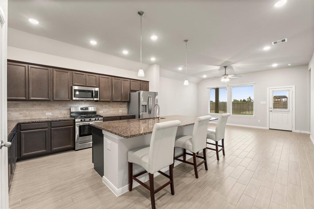 Beautiful, Move-In Ready Home for Lease in the Desirable Fulshear Area! Welcome to 30839 Boxwood Drive. This immaculate 3-bedroom, 2-bathroom home offers the perfect blend of comfort and modern elegance. Step inside to find a bright open-concept layout with high ceilings, recessed lighting, and wood-look tile flooring throughout the main areas. The stylish kitchen features granite countertops, a large center island with seating, stainless steel appliances, and ample cabinetry—ideal for everyday living and entertaining. The spacious primary suite includes a walk-in closet and a spa-like bath with dual vanities, soaking tub, and a separate shower. Additional highlights include a dedicated laundry room, flex room/home office with French doors, and a two-car garage. Enjoy the expansive fenced backyard, perfect for pets or outdoor gatherings. Located in a peaceful community with quick access to major roads, shopping, dining, and top-rated Lamar CISD schools.