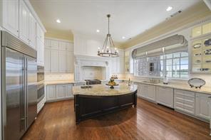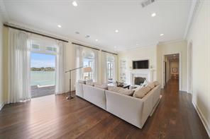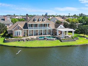 Welcome to the epitome of luxury living in East Shore! This stunning three-story Robin Rueby custom home is a true masterpiece, embodying the timeless elegance of Georgian design while offering unparalleled craftsmanship and attention to detail. Seize this opportunity to own the finest lot with a breathtaking waterfront view, spanning 275 feet along the shore of the picturesque Lake Woodlands. Nestled in a tranquil cul-de-sac, this magnificent estate sits on the largest lot in the area and boasts absolute privacy with no front or rear neighbors, ensuring a serene oasis. The exterior features 100-year-old antique brick, complemented by exquisite trim work and paneling that exude timeless charm. . Indulge in the ultimate outdoor living experience with infinity pool ,spa and gazebo, exclusive access to the clubhouse, and the security provided by 24-hour patrol, with The Waterway, Hughes Landing, and Market Street just a short stroll away. See attached list for upgrades.