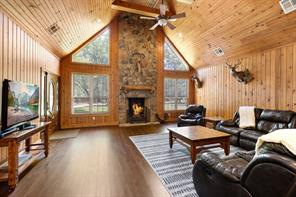 INCREDIBLE HOME - LOCATION! Don't miss out! Discover tranquility just minutes from The Woodlands, Magnolia, Conroe, Montgomery & Tomball areas! Pristine 2.5764-acre property w pond access boasts 4 bedrooms & 3 full baths, including a unique separate double primary suite on first floor. The stunning living room features a vaulted ceiling & a charming wood-burning stone fireplace, seamlessly connected to the open-concept dining & kitchen. Enjoy brand new flooring throughout the home, a brand new entrance, a newly installed crushed concrete driveway, a new iron gate & state-of-the-art Key Master opener w a pedestal. The home has been freshly painted inside & out. The HVAC systems are newer & the roof is approx 8 years old. Relax on the wrap-around porch, complete w new fans, or spend your evenings fishing in the fully stocked pond at the back of the property. There’s ample space to add a storage building, a luxury pool, or an outdoor grilling area. Incredible opportunity!