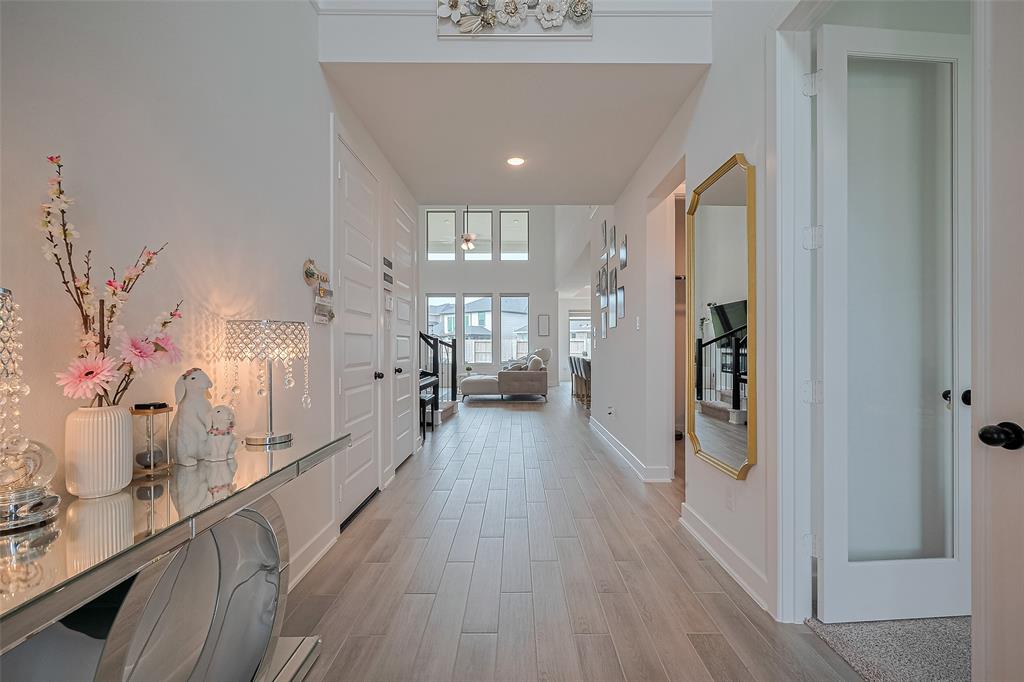 Stunning 2-story Westin Home on a premium corner lot with a spacious backyard and beautiful upgrades! This 4-bedroom, 3.5-bath home features a dramatic rotunda entry with a winding staircase, a 2-story family room, and elegant ceiling treatments throughout. The island kitchen opens to an informal dining area, perfect for entertaining. Private study downstairs, plus a luxurious primary suite with dual vanities, soaking tub, and large walk-in closet. Upstairs offers a game room, and a 4th bedroom with full bath. Beds 2 & 3 share a Jack-and-Jill bath. Covered front porch and rear patio, full gutters, custom blinds, sprinkler system, and more. Zoned to top schools and conveniently located near shopping, dining, and major highways. Move-in ready! Call for private tour today.