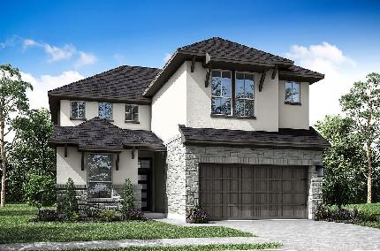 The Downy - 3 CAR GARAGE! -Tri Pointe Homes Downy is a modern two-story with a four-sided brick exterior and a grand 8-foot entry door. Upon entering the home, you are greeted by an airy foyer featuring double-height 20-foot ceilings and interior 8-foot doors, creating a sense of grandeur and openness. The main floor boasts an open floor plan that connects the living room, dining area, and kitchen with built-in appliances. This home creates visual interest in the living area with a curved staircase, oversized windows, and an open view from the game room to the downstairs area. Well-appointed bedrooms are located on the first floor: the secondary bedroom and bath with a walk-in shower only and the primary bedroom with a luxury ensuite bath featuring a stand-alone tub. The second floor has two additional bedrooms, a game room, and a dedicated media room. The media room has prewiring for four speakers and a subwoofer, perfect for a full cinematic experience.