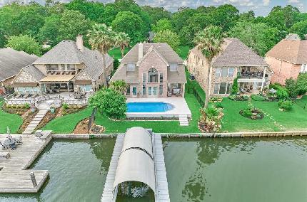 Welcome to a realm of refined luxury as you step into this magnificent two-story home, nestled in the gated, lakefront community of Bentwater on Lake Conroe. From the moment you arrive, you will be entranced by gas fire lanterns, soaring ceilings, open concept and fine craftsmanship that unfolds before your eyes. Every detail of this home has been thoughtfully curated to exude elegance and functionality. This exceptional residence boasts a spacious primary retreat with spa-like bathroom, 4 additional bedrooms each with full ensuite bathrooms and 2 half bathrooms, creating a haven of comfort and sophistication. The large island kitchen is a culinary masterpiece, showcasing stainless steel appliances with custom cabinetry and enormous family room with power blinds harmonizes seamlessly with the grandeur of the space. Entertaining becomes a graceful affair with the spacious game room, true media room and covered back patio with well-appointed summer kitchen and cozy fireplace.