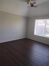 Small quaint neighborhood. Great Katy School district. Den with F/P with ceiling fan and two window boxes. Kitchen with pass through bar over looking dining/ den. Kitchen with great view of the street. Granite counter tops and a pantry. Garage was a two car garage but 1/4th of the back corner converted to a room with access through the interior of the house. Washer and dryer connections in garage. Three bedrooms 2 baths. Primary bath has a separate shower and tub. Two closets. Large patio for entertaining off the living room. All the bedrooms have ceiling fans.