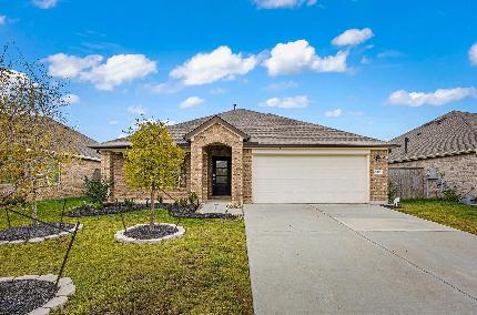 Stunning one-story home in the Ladera Creek community! This beautiful residence offers 4 bedrooms, 3 baths, a 2-car garage, and an inviting layout designed for modern living. The welcoming entry opens to the spacious kitchen and living room, creating a seamless flow perfect for entertaining. The spectacular kitchen features bright cabinetry, gorgeous light fixtures, a walk-in pantry, breakfast bar seating, and a charming breakfast nook. The kitchen effortlessly connects to the open living room, which overlooks the backyard and fills the space with natural light. Secondary bedrooms are generously sized with huge walk-in closets. The secluded primary suite boasts high ceilings, peaceful backyard views, and a private en suite. The spa-like primary bathroom includes dual sinks, a relaxing soaking tub, a glass-enclosed shower, and dual walk-in closets. Step outside to the backyard featuring a covered patio and plenty of green space—ideal for outdoor dining, play, or relaxation.