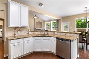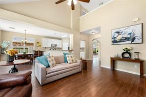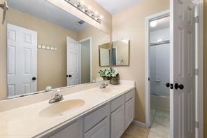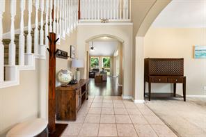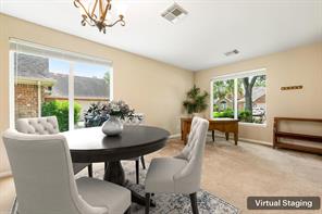 Stunning home in The Lakes at Countryplace 24/7 manned-gated golf course community! Move-in ready, on a quiet cul-de-sac, just a short stroll to scenic lake & clubhouse, pool, tennis, pickle ball & golf. Fresh landscaping & 2-car garage greet you. Enjoy major upgrades-NEW: 2 A/C & water heater + Big brand new dual pane glass windows create a bright & welcoming atmosphere adding Peace, quiet & energy efficient . Grand entry w/ soaring ceilings, formal living & dining space & open-concept living w/ a warm fireplace. The luminous breakfast nook flows into a well-appointed kitchen featuring granite counters, stainless steel appliances, ample storage space, plus a walk-in pantry. Primary suite down offers an updated bath w/ frameless shower, tub, dual sink vanity & large closet, while upstairs boasts 3 beds, full bath + flex/media room. Outside, an expansive fenced backyard w/ a large patio + swift 15 min drive - even during rush hour to Medical Center & zoned to Pearland ISD.