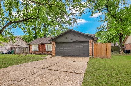 Beautifull 3 bedroom, 2.5-bath home located in Elm Grove Village of Kingwood. This charming home sits on a huge corner lot and offers a warm gas log fireplace, tile downstairs, new carpet throughout the rest of the home. Fully fenced yard.