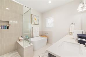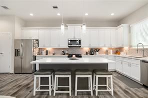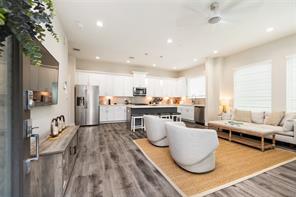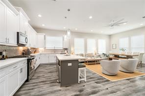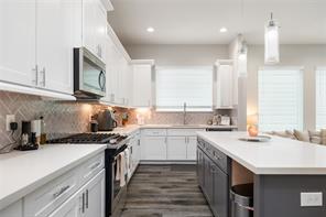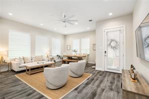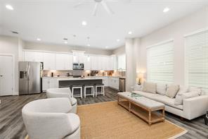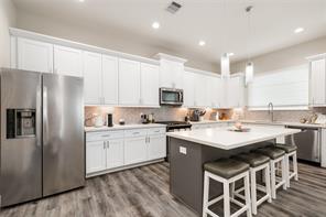 Built in 2020, this meticulously maintained 3-bedroom, 2.5-bath single-family home offers modern design with clean, neutral, and timeless finishes throughout. The open-concept first floor boasts soaring 12-foot ceilings with abundant natural light, creating a bright and airy atmosphere. The kitchen is a chef’s delight with Quartz countertops, stainless steel appliances, ample cabinetry, and generous counter space—perfect for entertaining. Upstairs, a built-in desk nook provides a convenient home office area. The luxurious primary suite offers a spa-like bath with double sinks, oversized custom shower, soaking tub, and a huge walk-in closet. Enjoy the added bonus of a private side yard. Smart home features include a smart garage door opener, thermostat, smart light switches, an electric car outlet & more. Refrigerator, washer, and dryer included. Located just north of The Heights with low taxes, no HOA, and easy access to 610 and 290.Never flooded—this move-in-ready home is a must-see!