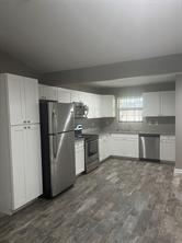 Home completely remodeled 2 years ago...2 bedroom, 2 bath cottage that is in perfect location nestled near Margaritaville and Lake Conroe where you can live where you play. Kitchen is light and bright and complete with granite counters, dishwasher, garbage disposal, microwave and plenty of cabinets for storage, laminate flooring throughout, refrigerator included. Open concept living and dining space with double doors leading to covered patio. Split bedroom plan offers privacy from primary to second bedroom. Primary bedroom with built in closet offers plenty of room for a king set. Attached primary bath has dual sinks and granite countertops. Secondary bedroom spacious enough to fit dual bed sets or in room office. Secondary bath offers tub/shower combo and granite counters. Refrigerator, washer/dryer included. See it TODAY!