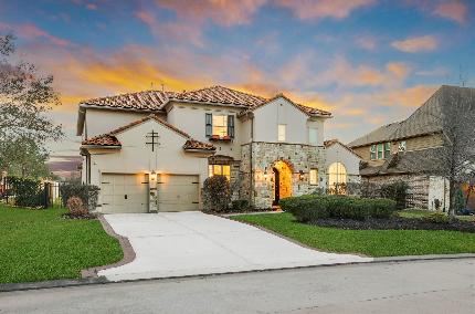 Experience refined living in this custom home in Creekside Village, The Woodlands, with tranquil water views and thoughtfully designed layout. The kitchen is beautifully appointed with quartz countertops, detailed millwork, and stainless steel appliances, opening to generous living spaces suited for both everyday comfort and elegant entertaining. The primary suite offers a spa-style bath and a custom walk-in closet with island. Premium finishes and built-ins and natural light enhance the home throughout. Enjoy the covered patio with gas and water connections for a future outdoor kitchen and relaxing setting . Upstairs, a game room with wet bar and a media room with sound and video equipment included provide additional space for gathering and leisure . A home designed for comfort, style and lasting enjoyment. Schedule your private showing. Information deemed reliable; buyer to verify.