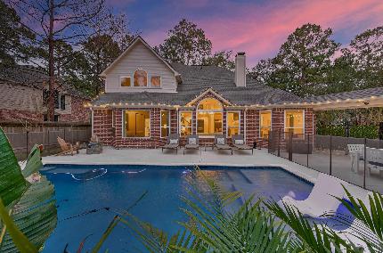 Surrounded by the lush greenbelt and right next to beautiful Capstone Park sits this 6 BR, 3 1/2 bathroom home, with newly renovated master bath and kitchen. Natural elements, textures and lighting flow throughout the home illustrated by plantation shutters. Totally updated with fresh tranquil paint color and flooring, carpet, lighting and ceiling fans, this family home waits for you. Less than one mile from TWHS and in the same neighborhood as Powell Elementary, the home boasts a private pool oasis in the back and 4 Crepe Myrtles and a Magnolia Tree in the front yard. 3 Car garage and wide driveway are a bonus for entertaining outside. Roof and windows new in 2018. New irrigation system. Centrally located in The Woodlands with easy access to all major roads, dining and shopping!