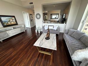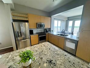 Absolutely stunning 2 bed, 2 bath corner unit in the heart of the Galleria! Ideal as a luxury residence or savvy investment. Features include an open floor plan, beautiful hardwood floors, huge west-facing windows, and a private balcony perfect for sunsets. The island kitchen offers granite counters, tile backsplash, wine fridge, stainless steel appliances, and plenty of storage. The spacious primary suite includes a walk-in closet with built-ins, double sinks, and a garden tub/shower combo with marble and tile finishes. The second bedroom has their own private entrance to the second full bath with glass shower, walk in closet and matching finishes. Tinted windows and designer touches throughout. Enjoy top-tier amenities: 24/7 concierge, valet, pool, BBQ grills, gym, sauna, business center, and event room. Motivated seller—ready to sell! Minutes to shopping, dining, and easy access to 59 & 610. Don’t miss this upgraded gem!