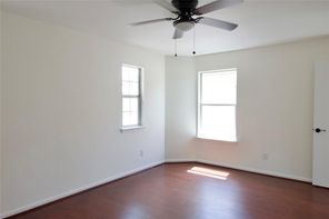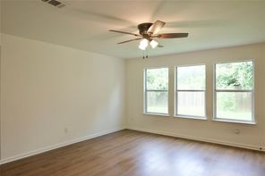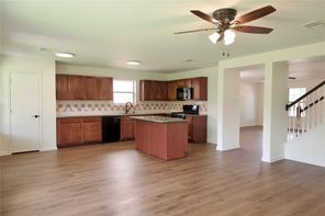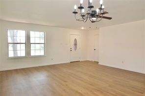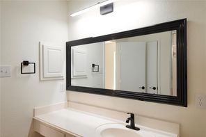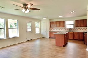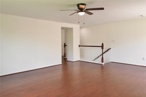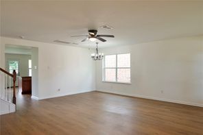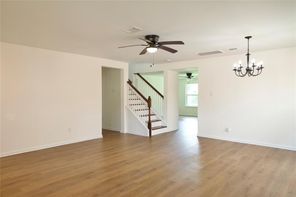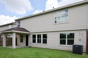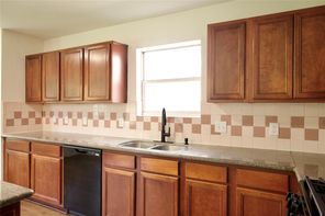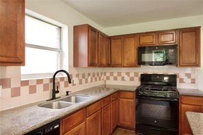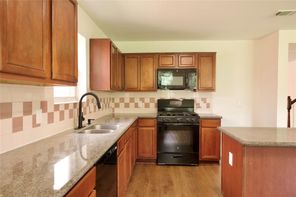 Beautifully remodeled in 2024, this home features laminated wood and vinyl plank flooring throughout both levels, offering a modern and cohesive look. The updated kitchen boasts granite countertops (2024), a stainless steel undermount sink with a gooseneck faucet, and recently replaced gas range, microwave, and dishwasher. The A/C compressor and air ducts were also replaced, and all fencing is less than a year old. Every light fixture and ceiling fan has been updated. Both the master and hall bathrooms have been upgraded with new mirrors, toilets, sinks, tubs, faucets, and vanity fixtures. Enjoy three spacious walk-in closets, a new leaded glass front door (2024), and energy-efficient double-pane windows (2024). The natural wood staircase adds charm, and the new dining room light enhances the home’s ambiance. With no back neighbors, the home backs to a serene greenbelt and includes a covered patio. Enjoy very low annual property taxes!