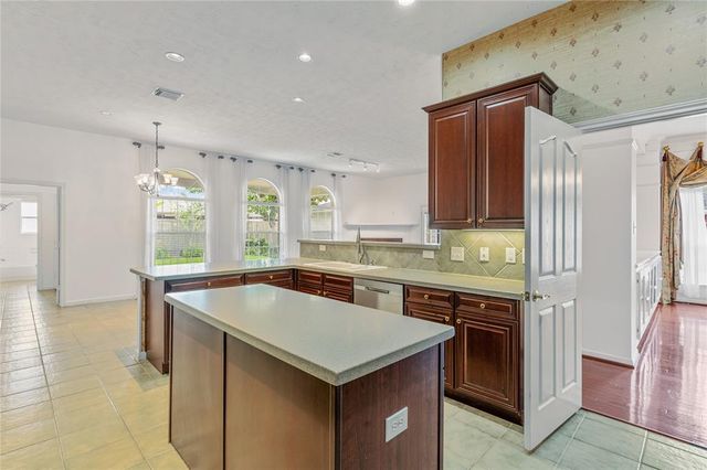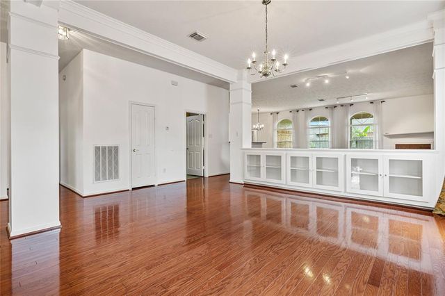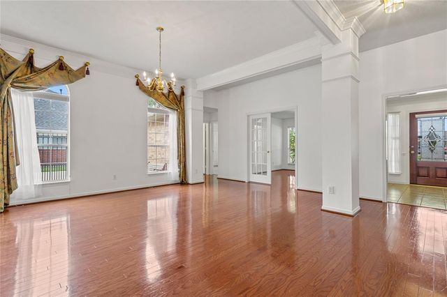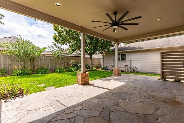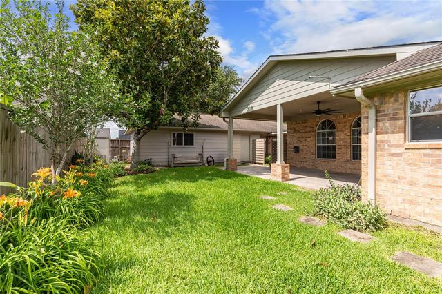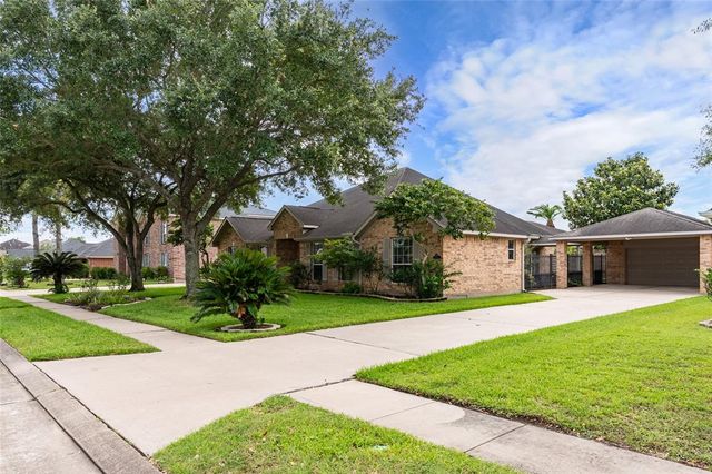 Conveniently located 20 minutes from the Medical Center and right around the corner from Town Square Mall, this elegant Cervelle home is everywhere you want to be! Pull into the 2-car port-o-cochere, enter through the tiled formal entryway, and take in the generously sized common spaces with gleaming hardwood floors, including a formal dining and office with french doors. The primary suite offers a large, well-lit bedroom with en-suite bathroom that features dual sinks, soaking tub, walk-in shower, toilet closet, and walk-in closet. Addtl 3 bedrooms are carpeted and located near one of two secondary full baths. Kitchen offers a breakfast bar and is open to the family room and breakfast area that overlook the covered patio and beautifully landscaped backyard. Outdoors, enjoy the fully fenced backyard—secured with a stylish wrought iron fence—or take a walk to Southgate Park to enjoy the playground and jogging trail that encircles the pond. Scheduling your showing today!