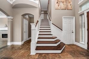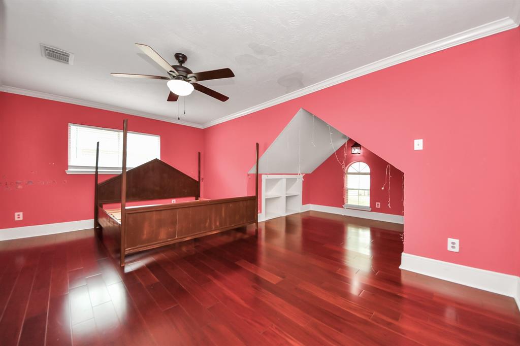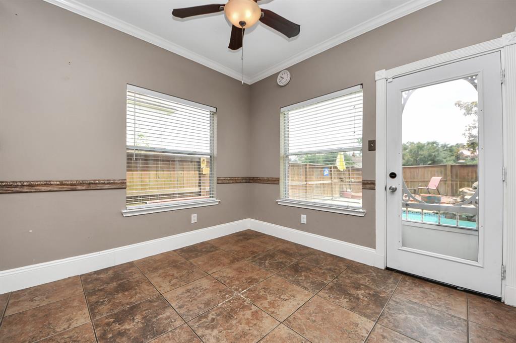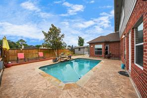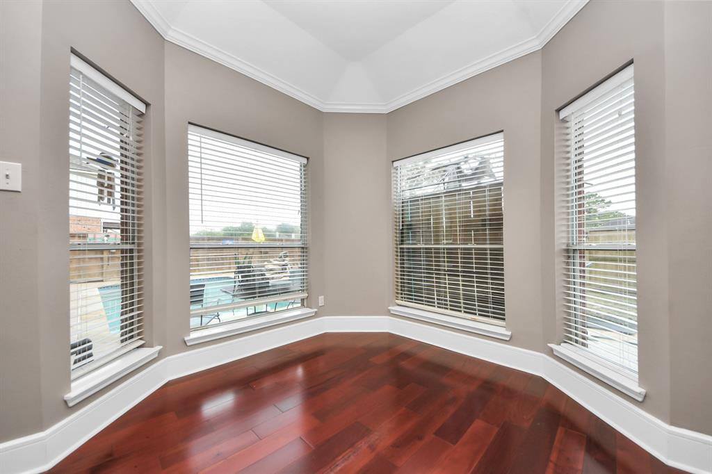 Pride of ownership shines in this spacious home with backyard oasis. Stunning two-story entry features hand-stained cherry oak steps with LED lighting. Formal dining room boasts bay windows & built-ins, while the gourmet kitchen offers oversized island, granite counters, and antiqued French-style cabinets, opening to breakfast area and family room with fireplace. Owners retreat includes sitting area with bay windows, cherry wood flooring, walk-in closet, jetted tub and separate shower. Upstairs find 4 bedrooms plus game room. Enjoy crown molding throughout, custom storage, and a backyard paradise with pool & flagstone walkway. Major bonus: Brand new 4-year-old roof and solar panels for energy savings! Oversized garage features epoxy flooring, built-in shelving and decked attic storage. Prime location near shopping, dining with easy I-45/Beltway 8 access.