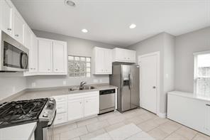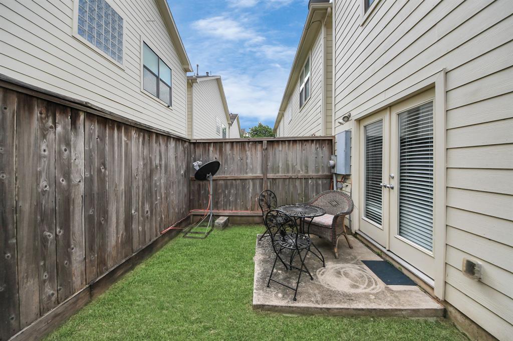 Welcome to this beautifully maintained Patio home offering the perfect blend of comfort, convenience and style. Located in a gated community with very easy access to the Medical Center, downtown, the galleria.Easily accessible to major highways.The first floor features an open floor plan with abundant natural light, living area, and modern kitchen.The living area is warm and inviting seamlessly connecting to a compact yet well- designed backyard- ideal for entertaining, barbecuing or enjoying quite evening outdoors. Half bath down with large storage under the stairs. Upstairs the primary suite boasts a huge walk in closet and a private ensuite bath with a private jacuzzi for your relaxation.Two additional bedrooms upstairs feature large closets offering ample storage space. Located in a quite, friendly community. This home is perfect for those looking for easy, elegant living in a highly desirable location! Located outside flood zone. HOA fees cover water, trash and sewer.