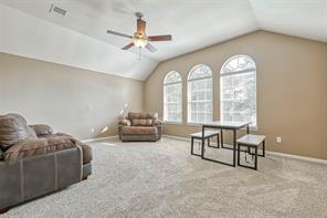 This 'must see' 4 bedroom, 2.5 bath home is located in the much desired Walden on Lake Conroe subdivision. Upon entering the home, you'll notice the high ceilings and hardwood flooring in the entry, an open floorplan which includes the living room, kitchen and breakfast room. (The downstairs has hardwood flooring throughout with the exception of the kitchen and bathrooms.) The galley style kitchen offers granite counter tops, tile flooring, a farm style sink, white cabinets and stainless steel appliances. The living room is light and bright, full of windows, and has a beautiful wood burning fireplace with a stone front, and entry/exit to the backyard. The primary bedroom comes complete with a double vanity, jetted tub, separate shower, and a walk-in closet. Upstairs you will find a second living area (gameroom) 3 nice sized bedrooms, and a full bath. The oversized backyard is fully fenced. Walden offers tennis courts, pools, boat ramps, restaurants, a gym, walking paths & a dog park.