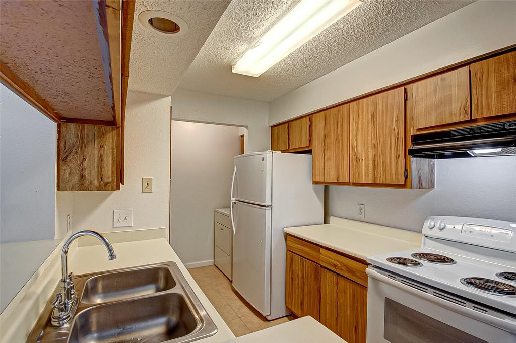 This condo is conveniently located 1st floor level near the complex main entrance. Featuring 2 bedrooms and 1 full bath. Equipped with washer, dryer and refrigerator for your convenience. No more going out to the washateria, as the washer and dryer are located in the condo. Access your very own private fenced in patio through the glass sliding door in the living area. Extra storage room located outside near the patio. Enjoy the great amenities that Walnut Hill Condos have to offer. Full size tennis court, 3 amazing pools and admin office with mail room located inside. Two designated parking spots right in front of the unit.
