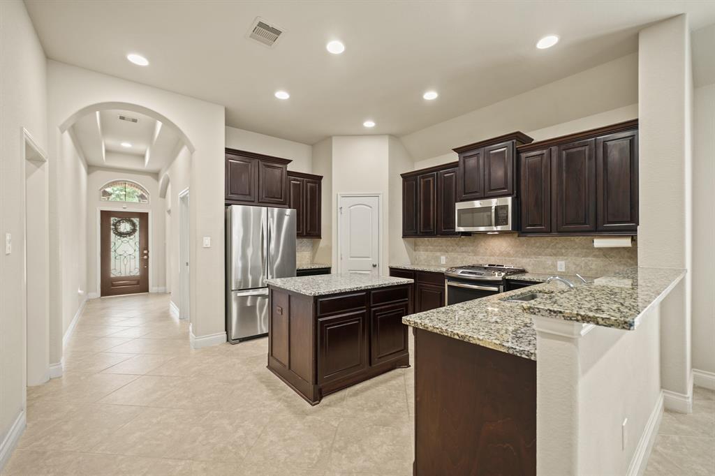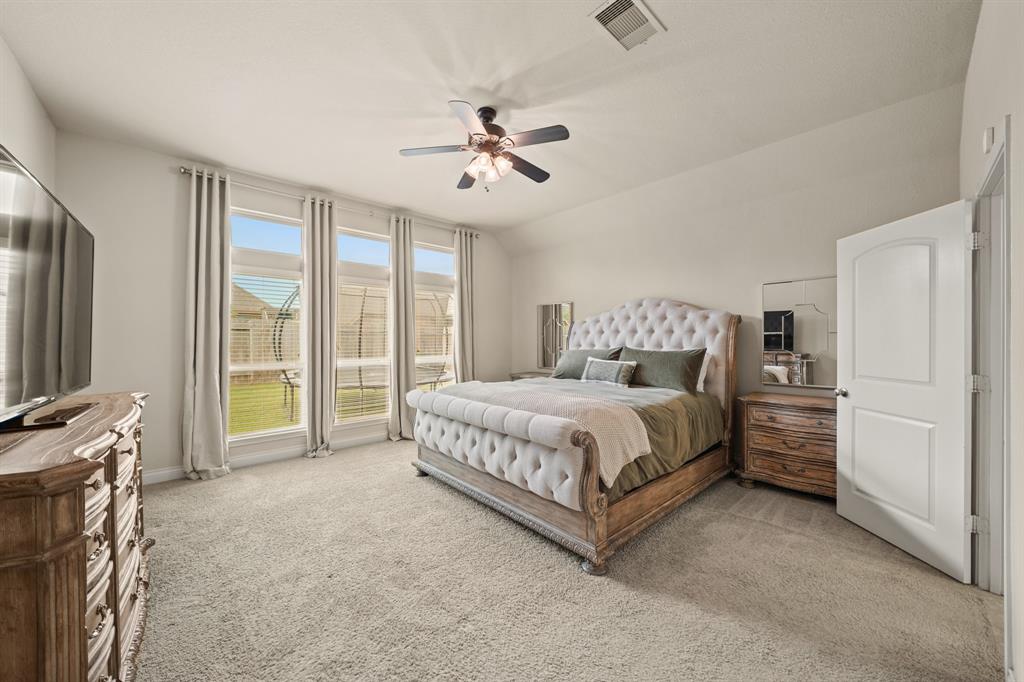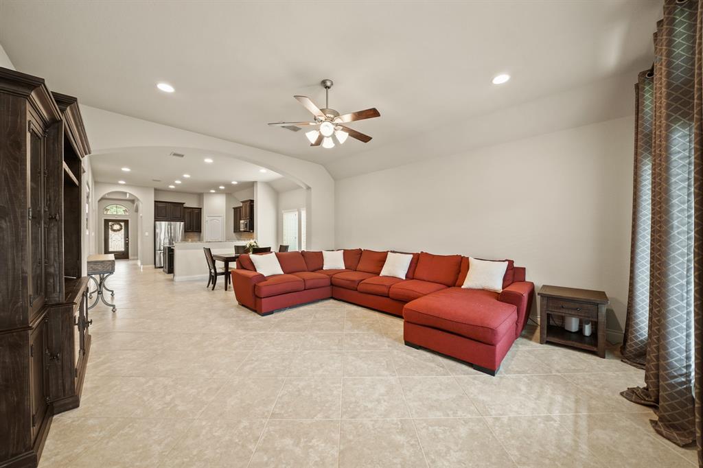 Fabulous and immaculate one-story Perry Home located in the Ventana Lakes community offers easy access to the Grand Parkway, I-10 and shopping & dining destinations. This open floor plan features high ceilings, recessed lighting, ceramic tile throughout the living areas and a private study w/French doors. Family room has access to a covered patio with beautiful backyard views and opens to the dining room and kitchen. Island kitchen offers granite counters, GE S/S appliances including a French door refrigerator and walk-in pantry. Primary suite has room for a sitting area and private bath has a granite counter w/dual sinks, garden tub, separate shower w/seat and a large walk-in closet. Secondary bedrooms have access to second full bath w/granite counter, nearby laundry room and built-in mud room by garage. Spacious backyard has 16x9 covered patio great for entertaining! Zoned to Katy ISD, the luxurious resort-style amenities include a fitness center, pool, splash pad & so much more!