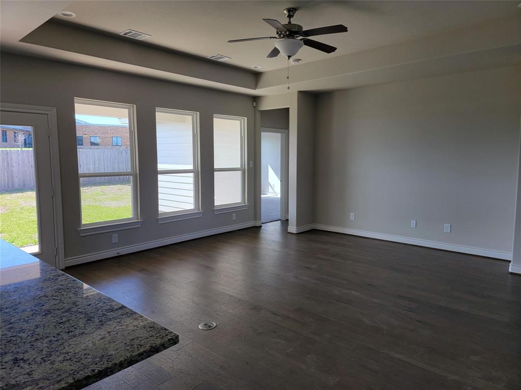 Available for lease in the desirable Hunters Crossing neighborhood! This charming 3-bedroom, 2-bath home features an attractive stone and brick exterior. Inside, the open-concept kitchen, family, and dining areas create a bright, spacious atmosphere. The island kitchen boasts granite countertops and stainless steel appliances—perfect for both everyday living and entertaining. Conveniently located within walking distance to Sealy Elementary School. (Buyer to verify room measurements.)