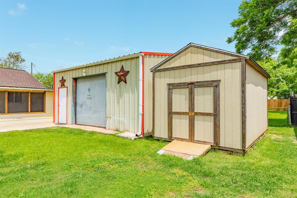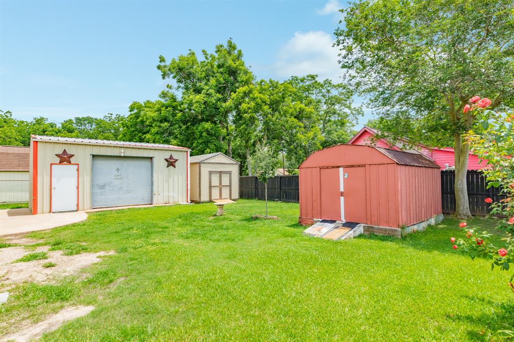Welcome to this charming 3-4 bedroom, 1 1/2 bath home nestled in West Columbia, TX that offers functionality indoors and out. This home has fabulous curb appeal showing off its custom built double carport and covered front porch complete with ceiling fan and wood accents. Inside, is cozy and a great space to make into your own. The living room w/vaulted ceiling & ceiling fan flows seamlessly into the kitchen w/ island, granite countertops and dining area w/ceiling fan. The utility room and potential 4th bedroom w/ half bathroom are off the kitchen, while the other rooms and main bathroom are located off the living room to the left of the home. Heading outside to the backyard, you will find the home sits on a spacious lot complete with another large covered patio, 2 sheds and a barn.