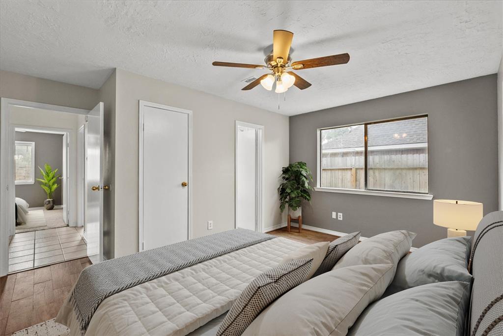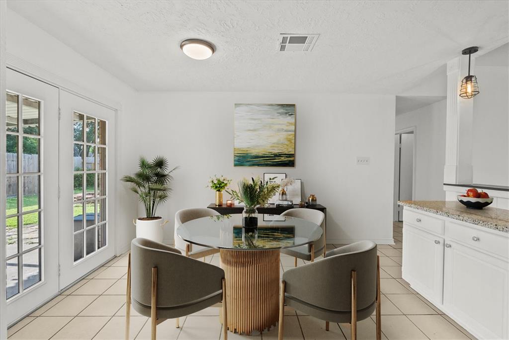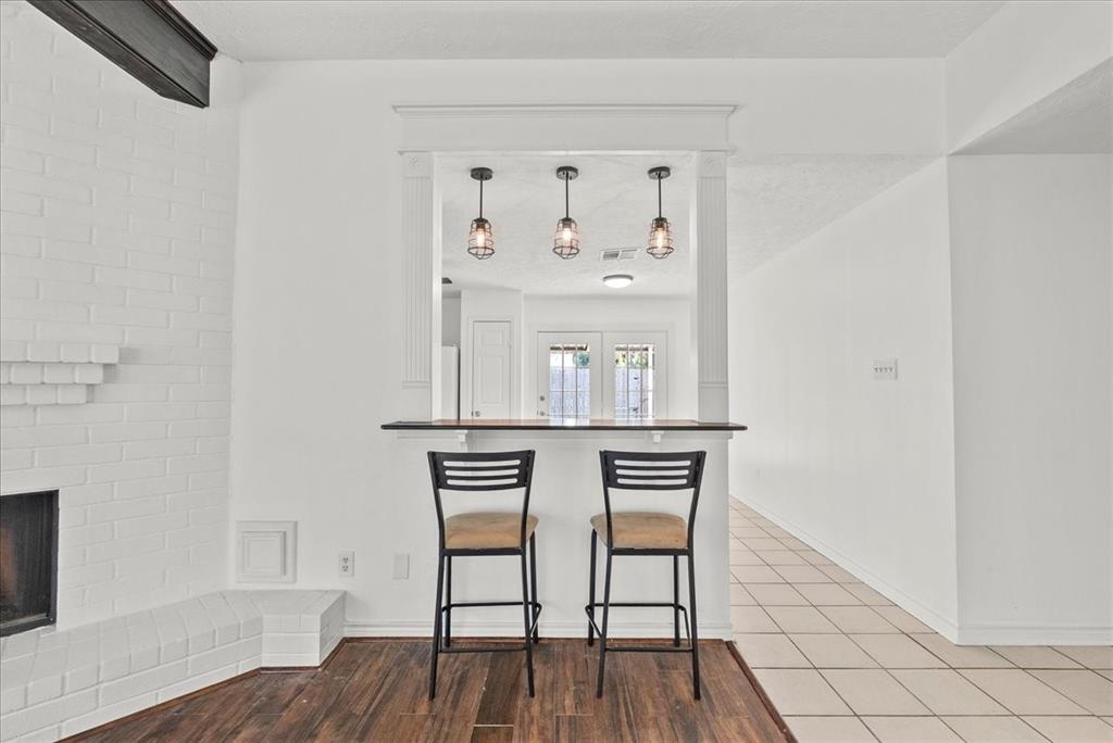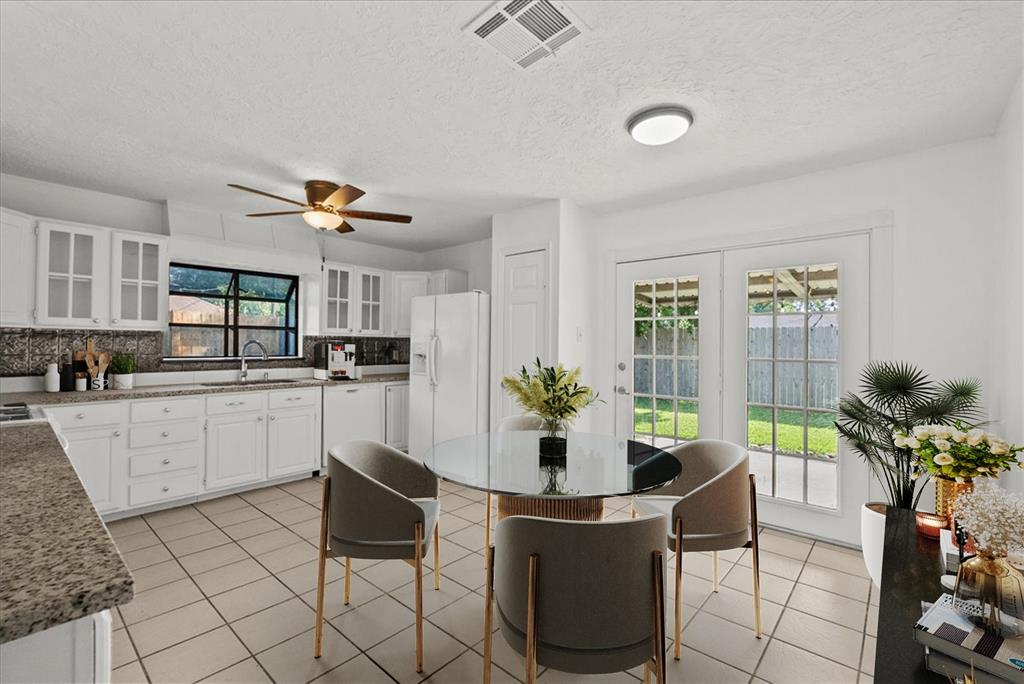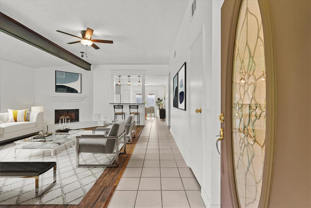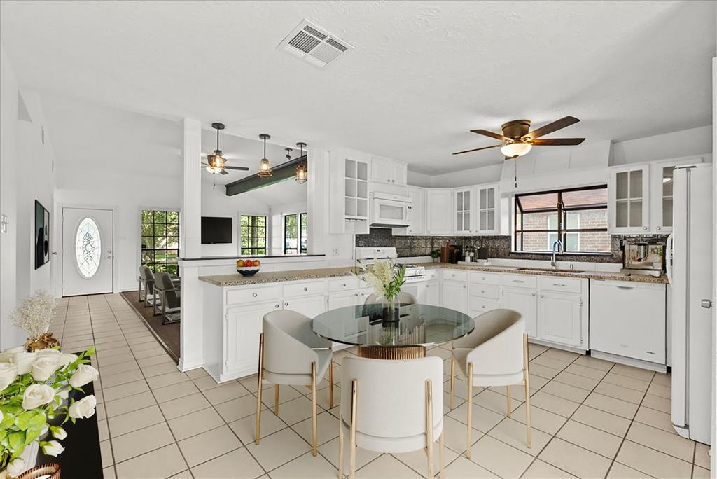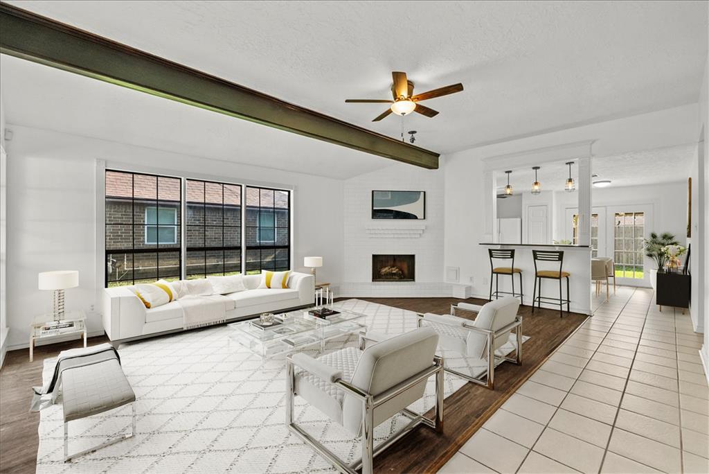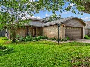 Nestled among mature trees, this charming single-story home offers both tranquility and convenience. Located just minutes from I-45, you'll enjoy quick access to shopping, dining, and entertainment. Step onto the covered front porch and into a welcoming living room featuring a cozy fireplace and a stylish designer beam. Natural light pours through abundant windows, brightening every space. The chef’s eat-in kitchen boasts a breakfast bar, expansive granite countertops, and ample cabinet storage. The private primary suite includes a newly remodeled en-suite bath for added luxury. Enjoy outdoor living on the covered back patio overlooking a pool-sized yard—perfect for entertaining or relaxing. Zoned to Clear Creek ISD (CCISD) and offering a low tax rate, this home combines comfort, function, and a great location. Don’t miss your chance to own this beautifully maintained gem! Roof was replaced in 2025!