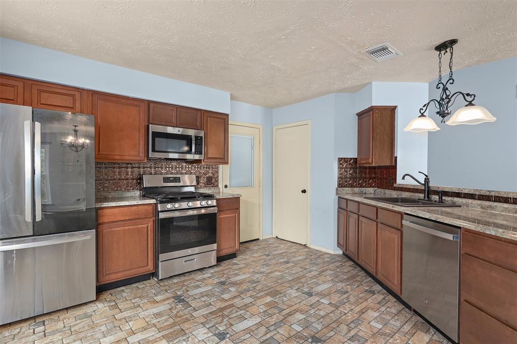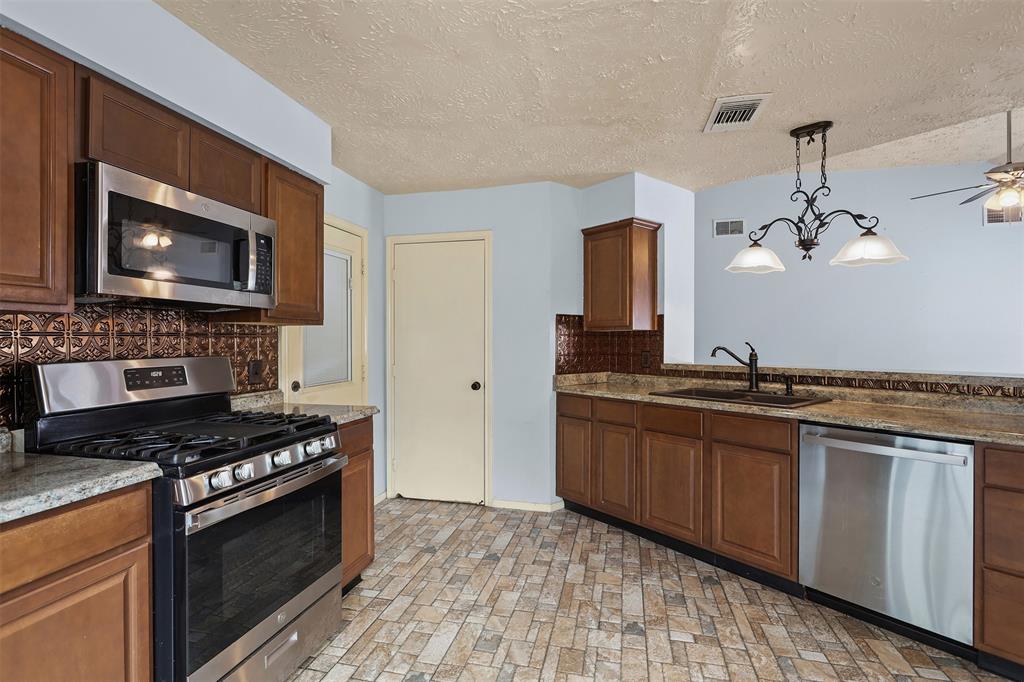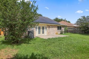 Nestled in a lovely neighborhood, this home boasts large shade trees, and a charming front porch. A fenced in back yard that backs up to a park. Enjoy the back patio which is perfect for grilling out, or you may choose to relax inside by an inviting gas/log fireplace. ADA doors throughout, secondary bath has ADA walk in tub. The kitchen and bathroom floors are adorned with beautiful stone. The property comes complete with a new garbage disposal, refrigerator, built in microwave, and washer/dryer, a well as a chest freezer. The home also offers recent replaced roof , gutters, and windows, HVAC, and plumbing system! New solar panels,( with a 30 year guarantee) offer low utility bills. This is a truly charming place to call home.