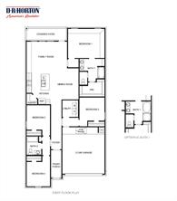 The Easton is a spacious, one-story home with 1,680 sq. ft. of living space! It features 4 bedrooms, 2 bathrooms, and a 2-car garage, perfect for families or those who love to entertain. The foyer leads to three flexible secondary bedrooms at the front, ideal for guests, a home office, or a playroom, with a nearby bathroom. At the heart of the home, the open-concept kitchen, dining, and family room create an inviting space, with the kitchen offering a large island, pantry, and plenty of counter space. The private primary suite at the back includes an ensuite with dual sinks, a walk-in shower or optional soaking tub, and a huge walk-in closet. A covered patio extends the living space outdoors—perfect for relaxing or entertaining. The Easton combines comfort, style, and functionality!
