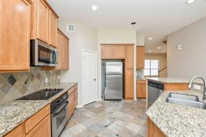 Spectacular town home in Green Trails, gated luxury complex. Wonderful updates include: granite, tile throughout down stairs. Master with 2 walk-in closets. Great space for either game room or media room. Beautiful courtyard connects to a 3 car garage. Controlled subdivision access. Excellent location, close to I-10, shopping, dining, entertainment, medical and hiking/biking trails. Near new Texas Children's & Methodist Hospitals. Area pool. Washer & dryer included. HOA fee covers water, sewer, bldg. insurance, roof, exterior paint and front landscaping and pool.