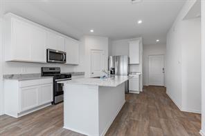 Welcome to the Dalton floorplan by D.R. Horton located in the beautiful community of Tamarron! This 1544 sq ft home offers 4 bedrooms and 2 full bathrooms all in one story. Past the first bedroom, the entry opens up into the open concept living, dining, and kitchen area featuring gorgeous granite countertops, stainless steel appliances, and large windows looking out into the covered patio. The remaining 3 bedrooms and 2 bathrooms are adjacent to the main living space. LVP flooring can be seen throughout the home. The more traditional style exterior features a brick and stone face. Tamarron is the place to be, with great community amenities and great location in the growing city of Fulshear! *Images and 3D tour are for illustration only and options may vary from home as built.
