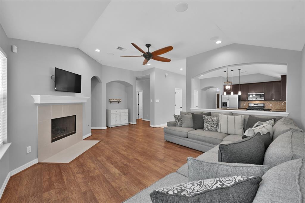 Beautifully maintained single-story home in sought-after Woodhaven Forest! This highly desired floor plan features 3 spacious bedrooms plus a dedicated study, all situated on an upgraded lot with no rear neighbors and a fully fenced backyard for added privacy. Step inside to find new luxury vinyl plank flooring throughout the main living areas and tile in all wet areas. The high ceilings and cozy fireplace create a warm & welcoming atmosphere. The island kitchen is perfect for entertaining, featuring granite counters, stainless steel appliances & ample cabinetry. The primary suite offers a peaceful escape with a large walk-in closet, garden tub, and an oversized walk-in shower. Additional highlights: No MUD taxes, low HOA fees, 1.9% tax rate, convenient access to I-45, The Woodlands, Conroe, and Grand Central Park!