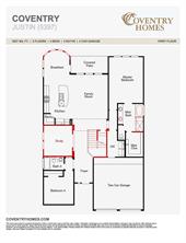 A New 2-story Coventry home, showcasing the builder’s signature wide-open floor plan and soaring ceilings that flood the space with natural light through expansive windows. This thoughtfully designed layout features 4 spacious bedrooms, 2 conveniently located on the first floor and 2 upstairs, offering privacy and flexibility. A dedicated home office on the main floor and casual dining area flows effortlessly into a modern kitchen, complete with a large island, quartz countertops, and luxury vinyl plank flooring throughout the main living areas. Upstairs, enjoy a generous game room, perfect for entertaining. The primary suite is a true retreat, highlighted by charming bow window ideal for a cozy sitting area and a spa-inspired bathroom featuring a relaxing soaking tub. Outside, covered patio opens to a large backyard with sprinkler system. Built with energy-efficient features, including tankless water heater, this home offers long-term utility savings and the peace of mind. Call today!